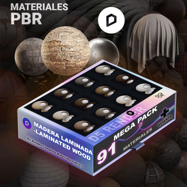 Biblioteca completa de materiales LAMINADO MADERA D5 Render. 91 materiales para arquitectura y diseño de interiores.