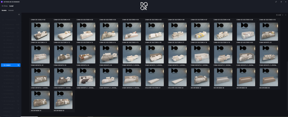 We selected the 79 most essential models CAMAS to create INTERIORES Y EXTERIOR renderings quickly and efficiently.
