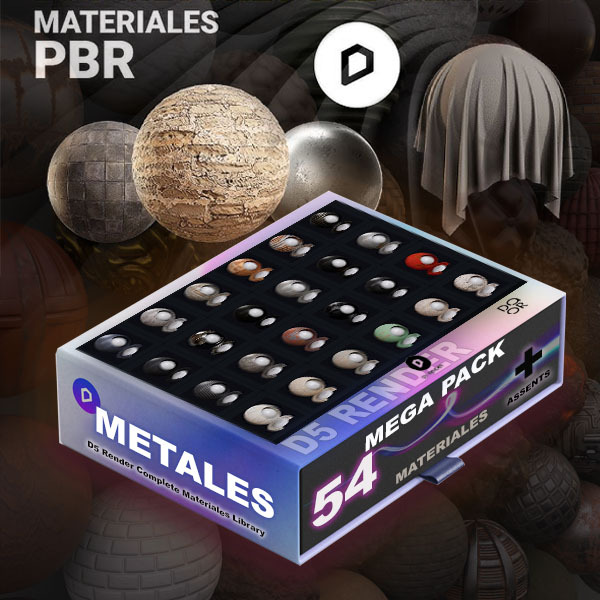 Biblioteca completa de materiales D5 Render. 54 materiales para arquitectura y diseño de interiores.