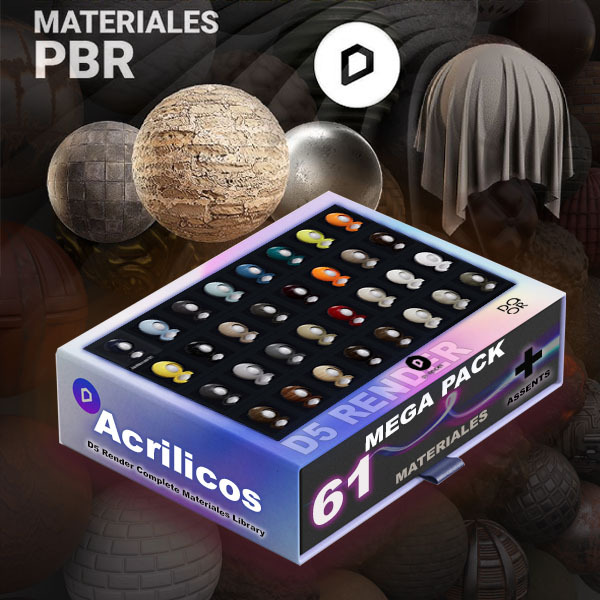 Biblioteca completa de materiales D5 Render. 54 materiales para arquitectura y diseño de interiores.