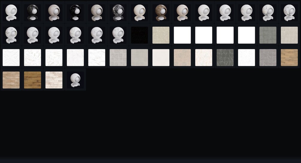 - 46 professional materials ready-to-use for your interior and exterior architectural projects (including textures with Diffuse Color, Normal, and Displacement maps).